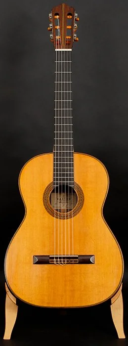 This gem of a guitar is an absolute wonder and was very much loved by its former owner, my great and greatly missed friend Frank Wallace. Frank recorded on this guitar for his album Four Spanish Guitars and concertized on it from time to time as well.